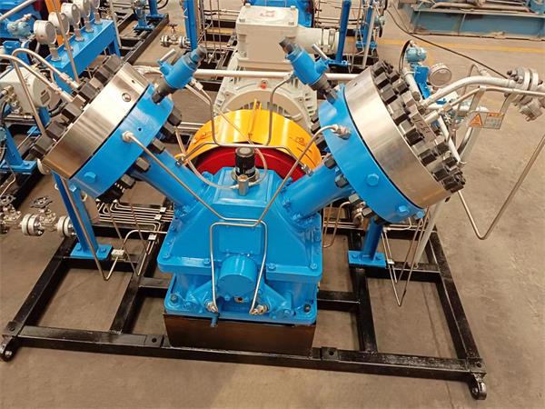 直联隔膜式压缩机气缸散热性能良好,接近等温压缩,可以采用较高的压缩比,因而它能提供的压力范围较广,可以从很低的压力直到200MPa。主要应用于特种气体市场,如工业气体、食品工业、石油化工、核电、航空航天、军事装备、科研试验等领域。适合于输送压缩压力高、纯洁度高、易燃易爆、强腐蚀性及要求无泄漏的气体,如氢气、氦气、氧气、氮气、氯化氢等。
